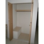 新築で購入された住宅の収納の中に枕棚とハンガーパイプを設置しました。 洋服が収納しやすくなり、喜んでいただけました。