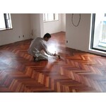 中古戸建購入をきっかけに大規模にリフォームをされました。お客様は明確なイメージをお持ちで、そのイメージに合った物をサンプルを取り寄せながら、確認していく作業でした。特に床材は花梨の無垢材でヘリンボーン貼り(矢羽貼り)が出来る物を10数社から取り寄せ、現地で着色塗装をして仕上げました。また和室側の壁は大理石をモザイク状に細かくした物を使用し、和室との間仕切りにアクセントを持たせました。その他の天井と壁はビニールクロスの上から塗れる特殊な珪藻土を使用。その中に色ガラスを細かく砕いた物を混ぜ込み、クロスの上からローラーで塗りこみました。お陰で細部までこだわったお気に入りの家が出来上がり、お客様には非常に満足して頂けました。