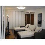 リビングの横にあった使っていない和室を改装し、リビングと一体にすることによって広々としたリビングスペースになりました。床は濃い色目で壁天井等は白で統一し、シックな印象に仕上がっています。クローゼット扉は白い木目を選び、圧迫感のないように工夫しています。