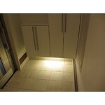 中古住宅の全面リフォーム 玄関部分は、下駄箱を大きくしたいと言うお客様のご要望でした。玄関のたたきが狭くならないように、下駄箱を浮かせて取り付け、収納力もアップしました。 ダークカラーの建具、収納家具、床材をホワイト系に全面変更し、明るく素敵なおもてなし玄関ホールになりました。