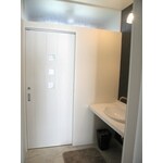 父親が車いすの為、LDK、洗面、トイレを移動しやすいようにバリアフリーにしました。洗面カウンターも特注で作り、車いすでも使いやすい高さとしました。