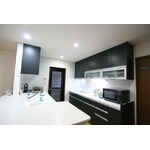 (旧株式会社ハウスドゥでの事例です。)清潔感のある白のカウンターと収納部のこげ茶でシックな印象に。以前は食器で溢れていたキッチンも、造作したキッチンカウンターに収納出来るのでスペースを有効に使えるよう提案。