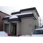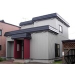 金属のスパンサイディングを張りました。 アクセントをつけたいとのご希望で、張りわけパターンをいくつもシュミレーションした結果、ポーチの袖壁の色を変えることになりました。とても気に入っていただけました。