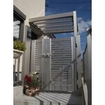 玄関ポーチ上部にシンプルモダンのアプローチテラス屋根を施工しました。 玄関にひさしと門扉が無かったので、これからは雨の日と部外者侵入防止の強い見方です。 奥様も大満足していただいた出来栄えでした。