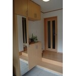 玄関ホールより一段下がった土間にある台所を使いやすくして同時に耐震補強工事をしたいとのご要望をうけご提案させていただきました。玄関については、木戸の玄関建具をアルミサッシに交換し使いやすいようにリフォームさせていただきました。