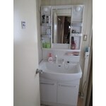 2階に給湯の配管が回っていない状況で、新たに給湯の配管を設置するよりも値段を抑える為に洗面化粧台と一緒に電気給湯器を提案しました。