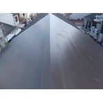カバー工法と呼ばれる方法です。 コロニアル(カラーベスト)材だった屋根を、新たに、ガルバニウム(GL)鋼板材を上から施工しています。
