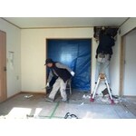台所と居間の間の壁を取りはらって、広く使いたいとの相談でした。できるだけ費用を抑えたいとの事で、クロス工事とフローリング工事は局所的に補修を行いました。