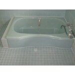 通常よりかなり広めの浴室と、以前にされた脱衣場リフォームの関係でユニットバスにすることができない状況でした。 現在の浴槽が広すぎるため、お湯の量も多いし掃除も大変なので半分くらいにしたいとのことでしたので、人造大理石のTOTOのネオマーブバスを設置しました。 床のタイルも全面補修し、割れてしまって危ない部分の壁のタイル補修を行いました。 また、シャワーヘッドも交換しています。