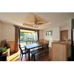 使われていなかった応接間と旧玄関と廊下の一部を利用し、南側の明るいLDKとした。庭の自然に溶け込むデザイン、もみの木の無垢材・スイス漆喰など自然素材をふんだんに使った内装。 将来奥様はお友達を呼んで「おうちカフェ」を開く予定。段差なくつながったウッドデッキで暖かい日はオープンカフェになる作りごをご提案