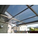 バルコニーにテラスを取付けました。 強い日差しや急な雨から洗濯物を守ります。 午後から雨が降るかも・・・。そんな日も洗濯物を干してお出かけできます! 出幅によっては先端に柱を立てなくても取付できますよ。