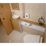 長く三角形になった空間を素材と色のマジックで憩いの空間に。細長く変形した部屋は工夫次第でデザイン性の高い空間になります。既設の間仕切り壁をやめて低めのパーティションで仕切る事によって広々していて、しかも落ち着いたトイレスペースが実現しました。パーティションと入り口のドアのデザインを同じにする事で部屋全体の統一感を持たせました。いずれもアクセントに泡ガラスを使用しています。