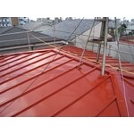 長い間、手を入れていなかったため、多くの錆が見受けられました。しっかりと下地処理をした後、工事を進めていきました。 また、屋根の上で倒れ落ちそうになっていたテレビアンテナの再設置を併せて行わせていただきました。
