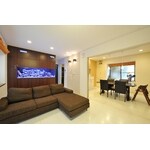 来客が多いお家なのでダイニングとリビングは普段はオープンでもスペースの区分けを出来るように設定しました。 最近歩けるようになった小さな嬢さんと幼稚園年長の息子さがいるので子供達が家の中で走り回れるように、そして1階、2階もどこにいても気配がわかるように構造材を変えない範囲で階段上がりの位置も変更、リビングから2階の気配がわかる場所の階段にしました。 建物で使う色味はメリハリをつけてシンプルに。 リビングのメインである水槽や他、カーテンなどが映える空間になるように打合せを重ねました。 床には床暖房も入れ、エコキュートも設置。オール電化へ切り替えています。 白く広い床は子供達が夏も冬おもちゃをいっぱいに広げてのびのび遊べる明るいリビングダイニングヘと生まれ変わりました。