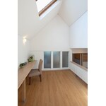 5層フロアーの1.5階、2.5階を造る為に柱や梁は出てきましたがそこがポイントとなるように工夫しました。 限られた面積の中にもうひとつの空間を生み出す事により、プライベートの部屋・収納の部屋、もしくは親世帯・子世帯の交流の場を設け、互いに助け合い、そして自分の時間も大切にできるよう2世帯住宅のデメリットをメリットに変える為の工夫をしました。 壁やドアで仕切らなくとも階層により視線をさえぎりお互いにプライベート時間を持てる、つかず離れずの階層。