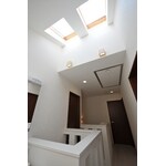 お父様の部屋をどこに配置するかをかなりの時間をかけて打合せを行い、最終的には静かな場所とトイレの近くということで道路から離れた東側に決定した。トイレには2箇所の出入口を設けてお父様の寝室から直接出入りできる提案をおこないました。 お父様の寝室とご夫婦の寝室の間に両方から使えるウォークインクローゼットを設け、将来的な自宅介護にも対応出来るプランとしました。 建物の中央にある廊下の壁を一部撤去し、お父様の寝室とのつながりを持たせることで、家族の気配を感じる事ができ、奥まった位置ではあるが孤立感を解消で、また家族もお父様の様子を確認できるようにしました。 廊下の壁を撤去して階段の位置を変える事で、リビング横の広がりが大幅に増やすことが出来ました。取ることの出来なかった耐力壁は、エコカラットで素材と色を変え、リビングのアクセントとしました。既存のRの室内建具はそのまま移設し、全て新しい空間の中に一部昔のものを使うことで思い出を残しています。