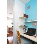 既存窓を活かした狭小地のプライバシー・明るさ確保のプラン+断熱を心がけました。子世帯のリビングを2Fに設け、寛げるように設計しています。ホール・書斎・洋室を一体の空間として奥行を感じられるよう開閉間仕切りとしました。ホール~息子さんのお部屋~リビングのプライバシー確保+冬季寒さ対策しています。
