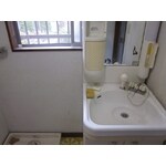 本来、部屋の右手に洗面化粧台がありましたが、窓の開閉を確保するために、配置変更を行いました。 洗面化粧台と洗濯機の配置を変更することにより、閉めたままであった窓を生かすことができました。 壁紙等の内装工事も併せて行ったので、明るい印象になりました。