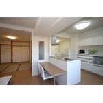 以前のキッチンは、昼間でも照明が必要で閉鎖的でしたが、キッチンをバルコニー側に移設させたことで、 とても明るく外の景色(6階の住居からは大和盆地が眺められる)も楽しめるLDKになりました。 たまに帰省する娘も進んでキッチンに立つようになって、一緒に料理を楽しめるので喜んでいます。