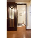 リビング(宿泊スペース)の仕切りは天井にボックスを作り遮光スクリーンを埋め込み、生活スタイルに合わせて使い分けるように工夫した。また廊下と和室の天井高の差が200㎜あったので間接照明を組み込みイメージを変えた。廊下をなくすことでホールが狭くなったため、玄関框の位置と形状・素材を変え、また透明ガラスを使い視覚的な広がりを出した。