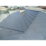 湘南で築15年にしては塩害の影響もあまりなく、きれいな状態でした。 ただ、やはり経年によるカビ・苔などの汚れや色褪せ、屋根の雪止めのサビ、棟板金の釘のゆるみなどがみられたため、修繕込みの塗り替えをご提案いたしました。 白っぽく退色していた屋根がツヤのあるグレーになり、同時に塗り替えた壁に美しく映えています。
