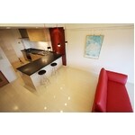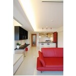 独立型の暗いキッチンでしたので、L型のオープンキッチンにし、リビングの日差しが差し込む開放的な空間にプランニング致しました。 印象的な赤いソファーに合わせて、LDK空間にもアクセントカラーとして「赤色」を取り入れました。 ご家族が集まり、楽しく過ごせる空間を造ることができ、大変うれしく思っております。