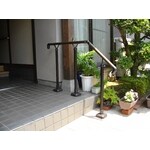 (旧株式会社アトリエ住まいるでの事例です。)玄関周りのバリアフリーのご依頼をいただきました。 玄関は框を一段増やし、手すりも設けました。外のアプローチにも手すりを設置し、出入りをしやすくしました。