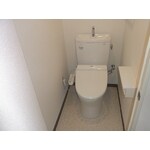 節水トイレ、掃除のしやすいパネル壁、清潔感を大事にしました