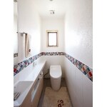 プラン・施工上の工夫 自然素材をとのご希望に無垢材・しっくい・タイル・天然石を使用しました。 ナチュラルカラーを中心に白、グリーンを使って北欧風に仕上げました。 奥様の動線を考慮して、ダイニングとリビングを見渡せる場所にキッチンを配置。 1つの空間に、バックヤード収納とキッズルームをプランしました。