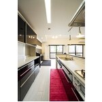 3LDKの細かく間仕切られたマンションを、寝室からリビングまでゆるやかにつながるワンルームへ大規模にリフォーム。 濃淡がはっきりした色調がお好みのお客様のイメージを汲みとり、個性的なタイルとコントラストを強調した異素材使いで、ご夫婦二人暮らしの理想の住まいを実現しました。