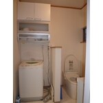 お台所横に3尺下がってトイレと脱衣室が半間ずつ並んでおり、脱衣室は洗濯機置き場も兼ねていました。また洗面器は浴室内にありタイルの床に下りて使うようになっていました。今回限られた空間の中で、ゆとりを持ってご利用いただけるよう、思い切って洗面、トイレを1つの部屋にまとめて配置するプランをご提案しました。入口は3尺壁位置を移動させ窪みをなくし、出来るだけ室内を広くとりました。洗面化粧台は奥行40センチのスリムタイプのものを利用し、トイレも前出の少ないタンクレスに。洗濯機まわりには収納を取付け、なるべく物は隠れるようにしました。トイレ・洗面1室プランはやはり抵抗のある方も多いのですが、今回は奥様と娘さんの2人暮らしで、気兼ねもないとの事でしたので実現しました。私共も思っていた以上に広く感じる洗面コーナーとなりました。