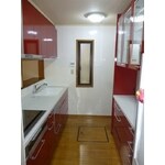 鮮やかな色のデザインで新たなキッチン空間を実現。キッチンボードもセットで収納もたっぷり。