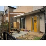 ガーデンラウンジを設置エコキュートを樹脂製の板材で化粧をし土間を石に物置を取替えました。