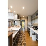 ・築35年の鉄骨造デザイン住宅。外観は既存のまま、内部からの床壁断熱改修工事、断熱サッシ工事を行い、室内側から根本的な寒さ対策を行った。 ・リビング床暖房、シーリングファン新設で吹抜構造の室内温度差を解消、目に見えない快適性を配慮した。 ・ご夫妻は仕事柄、本州各地、米国、アジアなど様々な住宅に住まわれた経験があり、交友関係も広いことから潜在的ニーズを考慮、来客時のLDKご提案を行った。 ・ロングカウンター付キッチン、食品庫、ウォークスルー収納等、サービスのし易さと、回遊動線、収納計画により、生活感を感じさせず、招く側、招かれた側、共に気兼ねなく、自由に寛げるリビングダイニングを目指した。