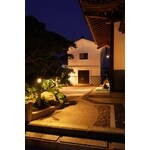 ■デザイン、除雪、凍結転倒防止、緊急車両の観点から、ネットストーン(タイル状の洗い出し仕上げ材)とコンクリートを併用。排水性、雑草対策、コスト、風合いの観点から、防根ネット+玉石を使用。 ■前面からのメインアプローチは短いため、道幅を太く、大きく曲線を構成し、母屋に似合う風合いを演出。蔵のアプローチはメインアプローチと交差させることで、細く、長いアプローチを構成でき、ドラマ性を演出するデザインとした。また、交差させることで、駐車場、前面道路、蔵、母屋への動線の自由度が増すよう計画した。 ■LED照明、人感センサーライトを多様し、省エネに配慮しながらドラマチックな夜間演出を実現。 ■雑草は撤去するも、低木、樹木は極力残すよう計画した。
