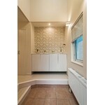 ご主人は思い入れのある実家を住みやすく直したい。しかし、奥様にとっては初めての一戸建て住宅。古くて暗いイメージを一掃し思い通りにできなければ建替えたい。1級建築士のご主人はあまり意見されず奥様の好みを中心に取り入れ、ご夫婦の相違ある想いを以下の提案で実現した。 ①組込み車庫があるためDKとリビングは分離され、手狭で暗い印象と行き来が不便な状況だった。4帖の書斎を吹抜にし、スキップフロアでつなげることで大空間のLDKが実現。ソファでくつろぐご主人、DKで作業する奥様が互いの気配を感じれる空間に。 ②スキップフロアによるLD間の段差は開放感はありつつも程良く壁に囲まれた落ち着き感のある約12帖のダイニングに。食事の後もそのままくつろぐ、数人の友人とお茶をする、10人程の職場の同僚を招待する等、様々なシーンで有効活用できる。 ③サンルームは奥様好みの内装で一新。冬に洗濯物が干せる部屋は北海道では重宝される。