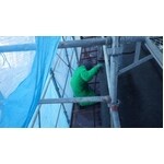 強風により一部屋根が破損したとのご連絡があり、調査致しました。屋根の傷みが思った以上に悪かったのと屋根直下の部屋の暑さにお困りでしたので、予算に合わせ断熱付屋根材を被せる工法を採用し、足場を掛ける必要があり外壁の塗装を合わせて施工しました。