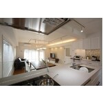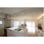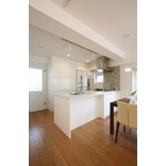 既存の2つの住居を1つの住居として快適な空間になるようプランニング致しました。設備や機能性の面からは、断熱性能を向上するため充填材を吹き付け、収納スペースも多く取り入れることにより、住居の中にデッドスペースをなるべく作らないよう計画しました。リビングは間仕切りをなくし、全体的に白を基調とすることで明るい空間を目指しました。床材には暖か味を感じるフローリングと無機質の大理石調の異なる材質を採用するなど、所々にアクセントを取り入れることで空間に変化を持たせています。機能とデザイン性のバランスの取れた住空間になりました。
