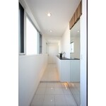既存の2つの住居を1つの住居として快適な空間になるようプランニング致しました。設備や機能性の面からは、断熱性能を向上するため充填材を吹き付け、収納スペースも多く取り入れることにより、住居の中にデッドスペースをなるべく作らないよう計画しました。リビングは間仕切りをなくし、全体的に白を基調とすることで明るい空間を目指しました。床材には暖か味を感じるフローリングと無機質の大理石調の異なる材質を採用するなど、所々にアクセントを取り入れることで空間に変化を持たせています。機能とデザイン性のバランスの取れた住空間になりました。