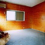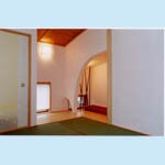 2F畳の間は娘さんの部屋、写真正面へ1間増築したことによって、天井に勾配が出てくること、床の間の部分が構造上下がってくることを隠さず逆らわず、デザインに取り込みました。 壁は、和室のイメージにとらわれず漆喰に紅をまぜて、ピンク色に仕上げました。光が入ると壁に反射して柔らかくやさしい部屋になると喜んで頂きました。1F居間も漆喰壁で簡単な間仕切はパネルドアを取付。畳は、薩摩葦の天井とデザインをあわせて正方形の縁なしで仕上げました。構造的に、安全性を重視し、構造計算を行い大きなスパンを確保しました。