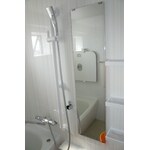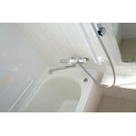 タイル貼りの浴室で寒いことがお悩みでしたので、床にはクッション性の高く乾きやすいものを選択。また、入浴の補助となるようシャワーフックにはスライドバーを設置し、浴槽脇の手すりと併用することで、動作しやすく配慮しました。 奥行が狭かったので、省スペースでたっぷり収納のキャビネットと洗面化粧台を選びました。