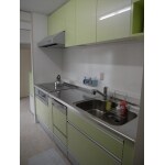 水わまりのトータルリフォームをさせていただきました。お施主様の好きな黄緑色がかわいいキッチンは収納がたっぷり。いままでごちゃごちゃと物がありましたが、すべてきちんと収納できました。