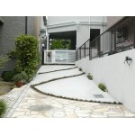 段差があり車の駐車がしづらかった玄関アプローチを,「ガーデニングのようなエントランス」をコンセプトに、緑を置いておしゃれにリフォームしました。プランナーがイメージスケッチを作成し、お客様が思い浮かべていたイメージ通りに仕上がり、とてもご満足頂きました。
