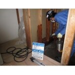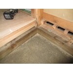 浴室を解体したらシロアリによる食害跡がありましたが、現状ではシロアリはいないようでした。しかし、予防のため、シロアリ消毒を行い、土台などを中心に木材の強度が落ちていた部分は防腐処理済木材で交換しました。これで、長い間の安全が保たれると思われます。