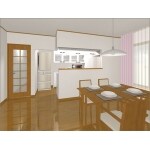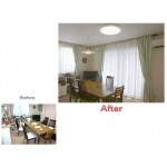 (パナソニック ホームエンジニアリング株式会社での事例です。) 特に配置などの変更はありませんでしたが、壁紙を張り替えるにあたって、露出していた給湯器の配管や電気の配線などを隠蔽することで、かなりすっきりとした印象になりました。カップボードの吊戸のガラス部分を下の方だけにしたことで、飾る収納が使いやすく出来ました。※金額、面積はキッチン・リビングダイニングの合計です。