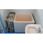 工事中になります。バランス釜・既存浴槽を撤去しホールインワンタイプ給湯器を設置したところです。