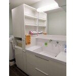 こちらが以前の洗面化粧台です。広くて素敵な洗面ですが、今回は収納力も設けました。