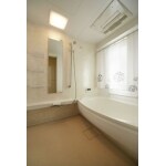 その他採用機器・設備:TOTO WFシリーズ1418サイズ アクセントパネル:アロマブラウン/周辺パネル:スレンダーホワイト/床色:ベージュ/浴槽:ホワイト/換気扇:浴室暖房付換気扇