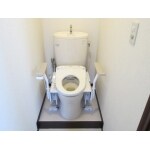 足腰が弱く、立ち座りに不自由なご主人様のため、リフトアップ便座にリフォームしました。