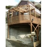 既存のスカイデッキが古くなり朽ちていたので、新たなスカイデッキを施工しました。材料には、イペ材を利用しています。イペ材は、施工後の狂いが少なく表面の割れに対する耐性が極めて高い材料です。既存のブロック塀も傷んでいたので、補修を施しています。お施主様が猫を飼っていらっしゃるので、猫が遊べるように、パーゴラも施工しました。同じイペ材で、門柱を製作し、インターフォンを設置し、全体的に統一感のある外構になりました。お客様にはたいへんお喜びいただきました。
